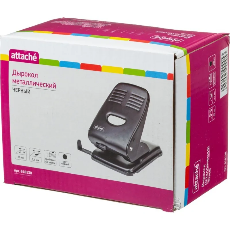 Дырокол металлический Attache Economy до 40 листов, с линейкой, цвет черный
