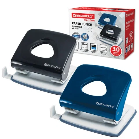 Дырокол Brauberg Rondo до 30 листов, ассорти (синий/черный)
