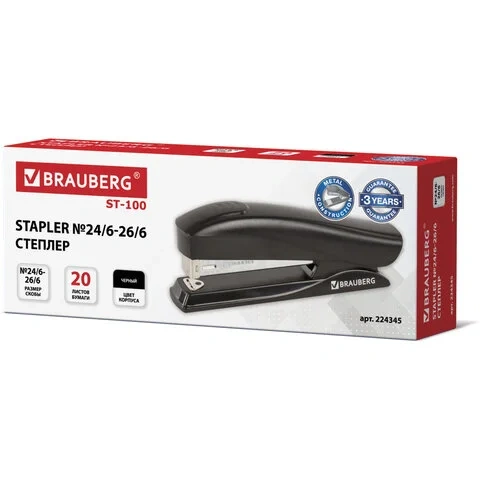 Степлер Brauberg Platz №24/6, №26/6, до 20листов, черный