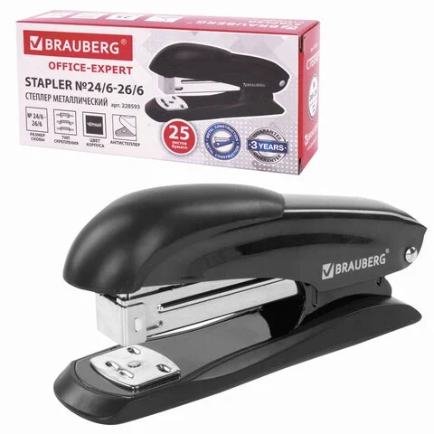 Степлер Brauberg Office черный, №24/6, 26/6, до 20 листов
