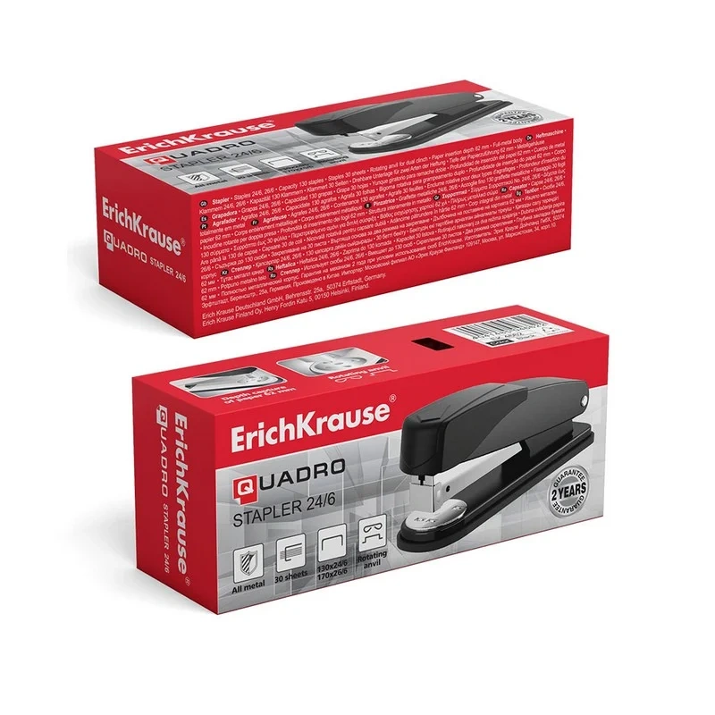 Степлер Erich Krause Quadro №24/6, до 30 листов, черный, 4662