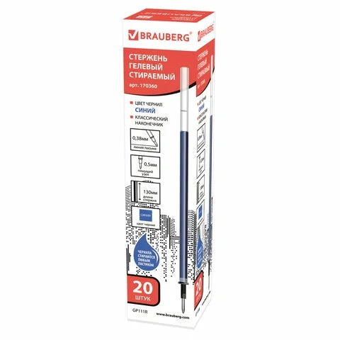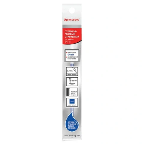 Стержень для гелевой ручки Brauberg синий, 0.38мм, 130мм, стираемый