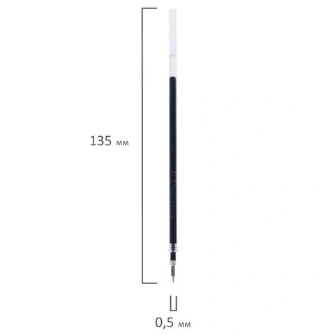 Длина стержня составляет 135 мм. Диаметр пишущего узла 0,5 мм создает тонкую линию письма, равную 0,35 мм. Имеет евронаконечник. Цвет чернил - чёрный.