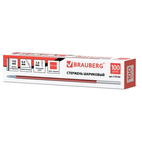 Стержень для шариковой ручки Brauberg красный, 0.5мм, 152мм