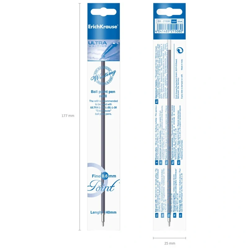 Стержень для шариковой ручки Erich Krause Ultra синий, 0.7 мм, 140 мм, 21508