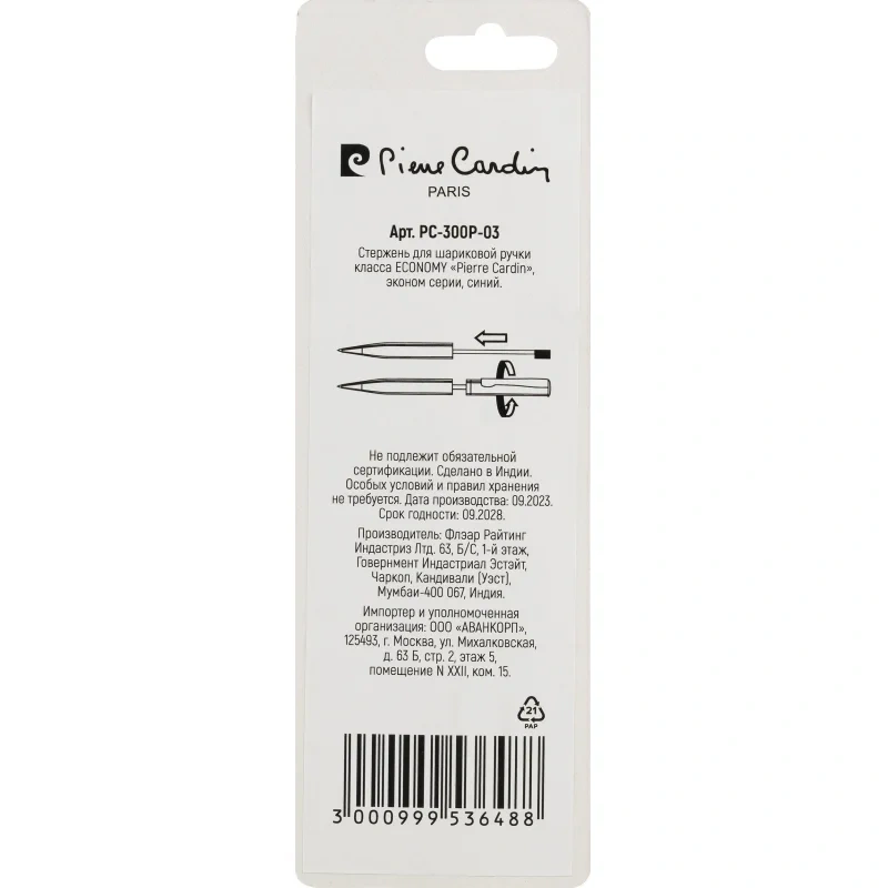 Стержень для шариковых ручек Pierre Cardin с чернилами синего цвета, толщина линии — 0,5 мм, длина стержня — 116 мм. Обеспечивает четкие и яркие линии, не требует усилий при письме, чернила быстро высыхают.