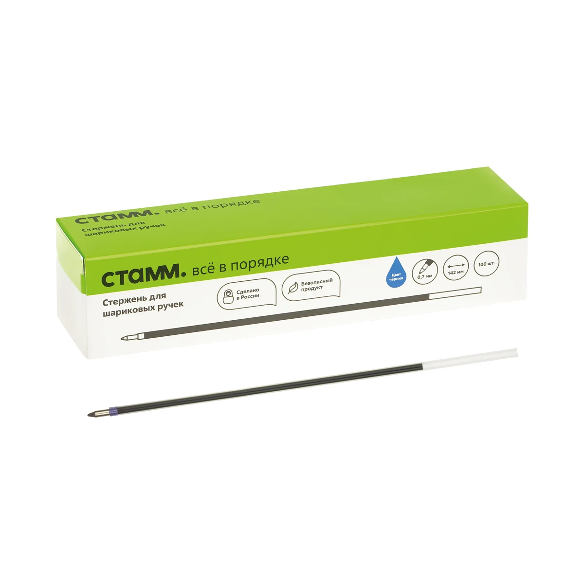 Стержень шариковый «СТАММ» предназначен для замены исписанного стержня шариковой ручки. Толщина линии – 0,5 мм, диаметр пишущего узла – 0,7 мм. Длина стержня – 142 мм.