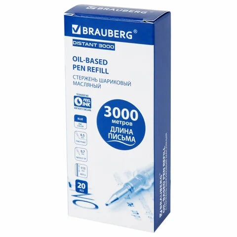 Стержень шариковый масляный BRAUBERG 'DISTANT 3000' увеличенная длина письма, 111 мм, СИНИЙ, игольча