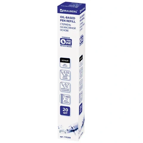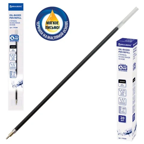 Стержень для шариковой ручки Brauberg черный, 0.35мм, 140мм