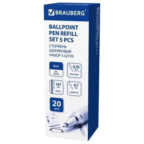 Стержень для шариковой ручки Brauberg синий, 0.7мм, 107мм, 5шт