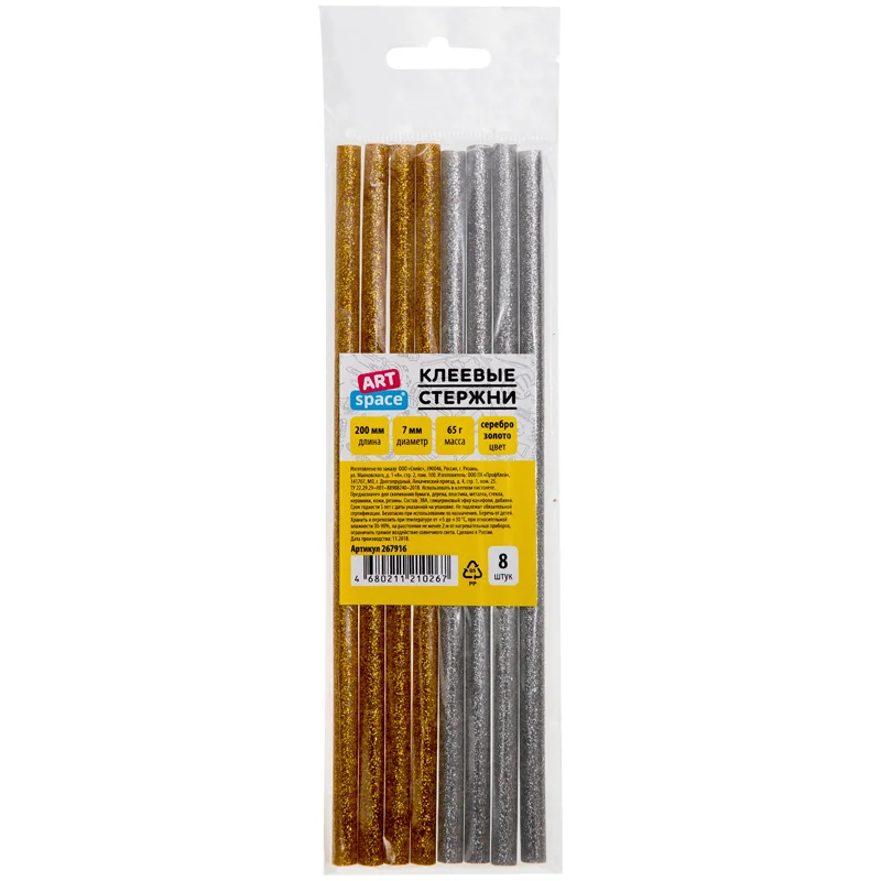Клеевой стержень Officespace 7х200м, золотые-серебряные, 8шт/уп