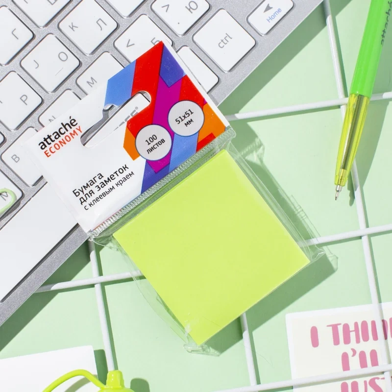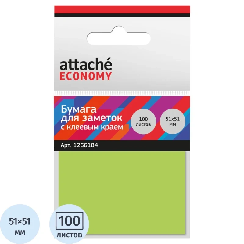 Стикеры Attache Economy с клеев.краем 51x51 мм 100 лист неоновый зеленый
