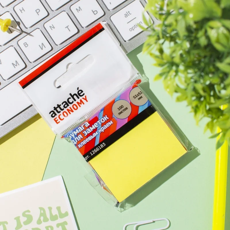 Стикеры Attache идеально подойдут для сотрудников творческих профессий и руководителей: рекомендуются для использования в процессе совещаний, обучения, мозговых штурмов. Формат: 51×51 мм. Клеевая система — 16 Н/м . Длина клейкой стороны 51 мм. В упаковке 1 блок из 100 листов. Цвет: неоновый желтый. Особых условий хранения не требует, сертификации не подлежит, срок годности не ограничен.