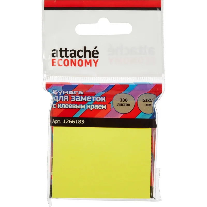 Стикеры Attache Economy с клеев.краем 51x51 мм 100 лист неоновый желтый