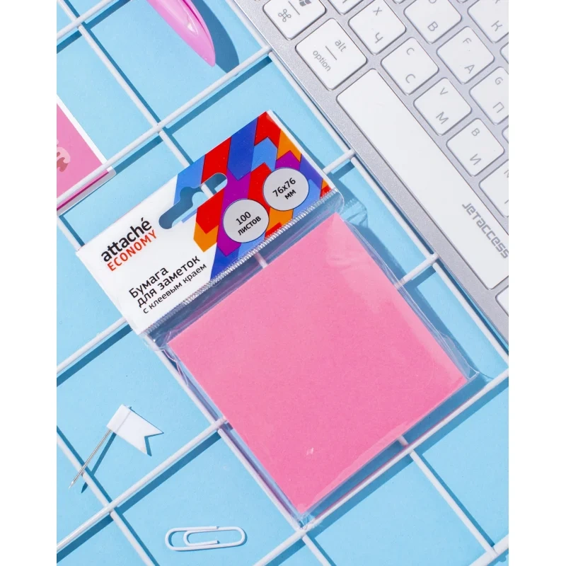 Стикеры Attache Economy с клеев.краем 76x76 мм 100 лист неоновый розовый