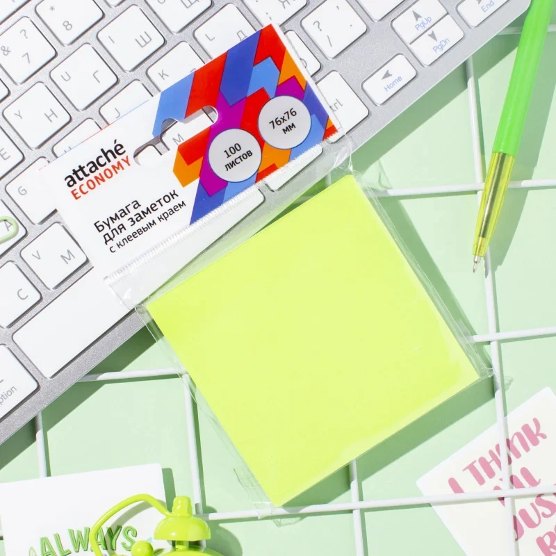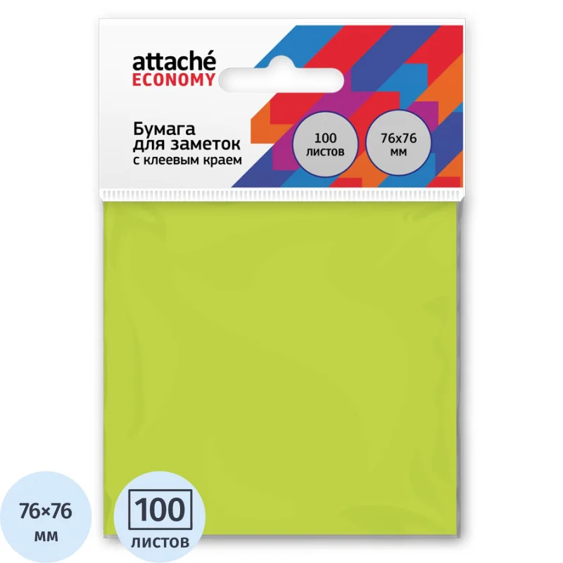 Стикеры Attache Economy идеально подойдут для сотрудников творческих профессий и руководителей: рекомендуются для использования в процессе совещаний, обучения, мозговых штурмов. Формат: 76×76 мм. Клеевая система — 16 Н/м . Длина клейкой стороны 76 мм. В упаковке 1 блок из 100 листов. Цвет: неоновый зеленый. Особых условий хранения не требует, сертификации не подлежит, срок годности не ограничен.