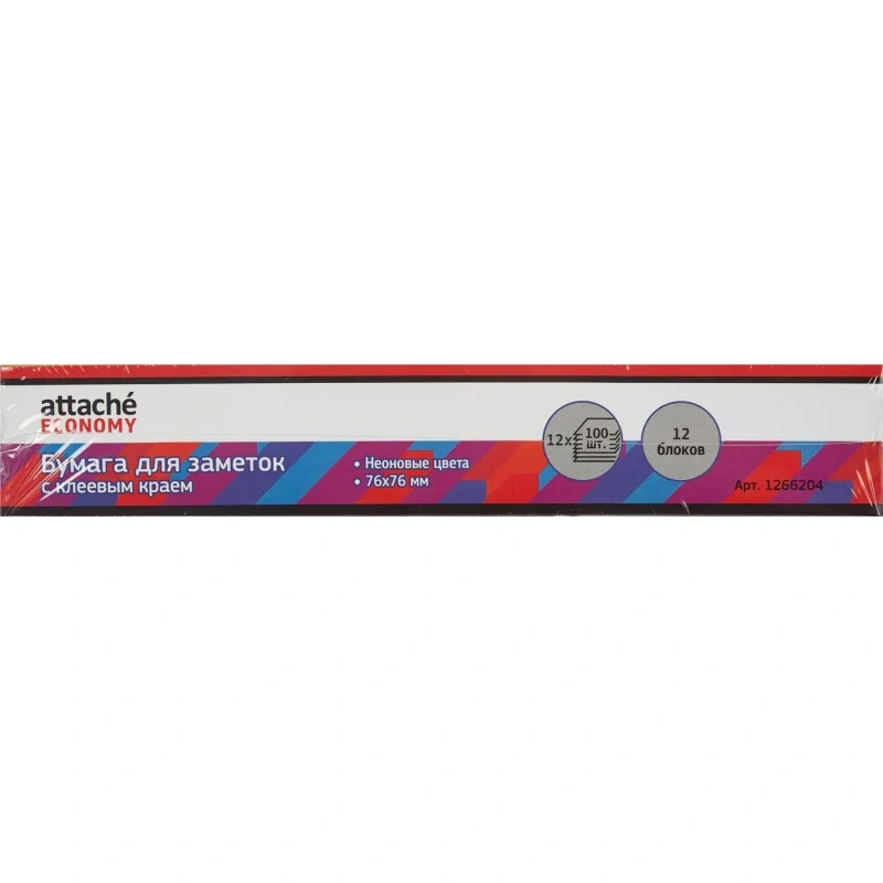 Стикеры Attache Economy с клеев.краем 76x76 мм, 100л в блоке, неон 12 бл