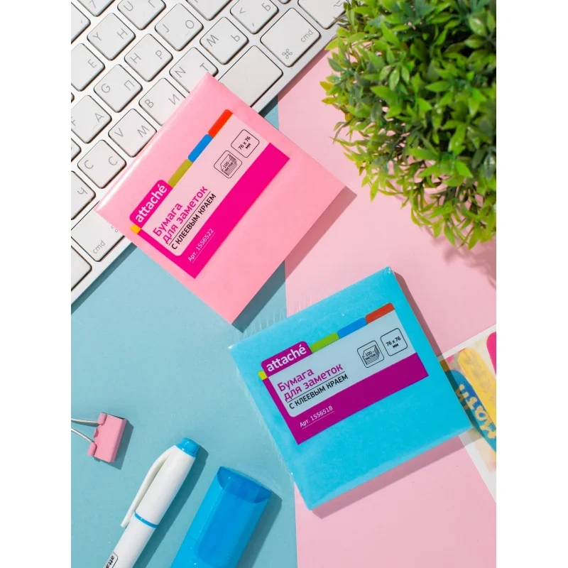 Стикеры Attache с клеев. краем 76х76, неон, голубой 100л