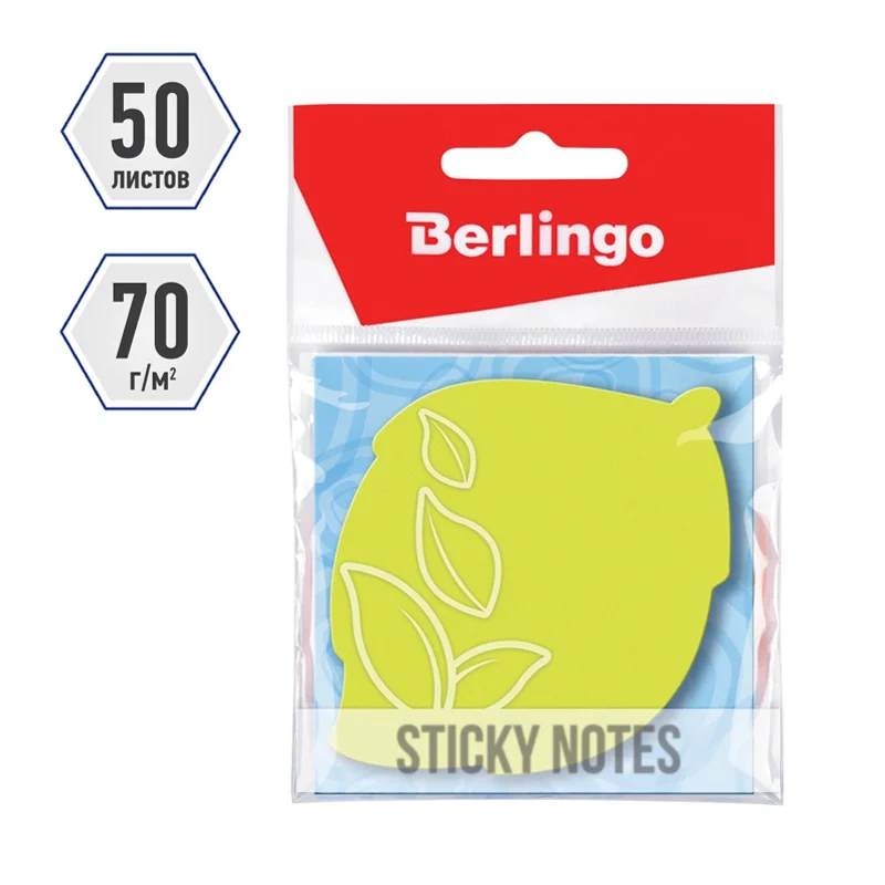 Блок для записей с клейким краем Berlingo Лист, зеленый неон, 70х70мм, 50 листов