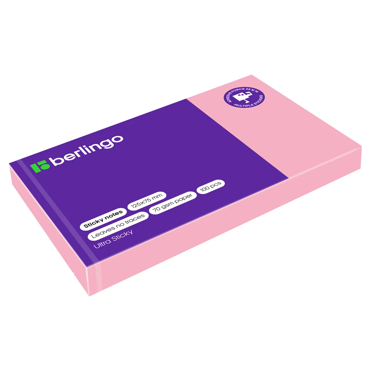 Блок для записей с клейким краем Berlingo Ultra Sticky розовый, пастель, 125х75мм, 100 листов
