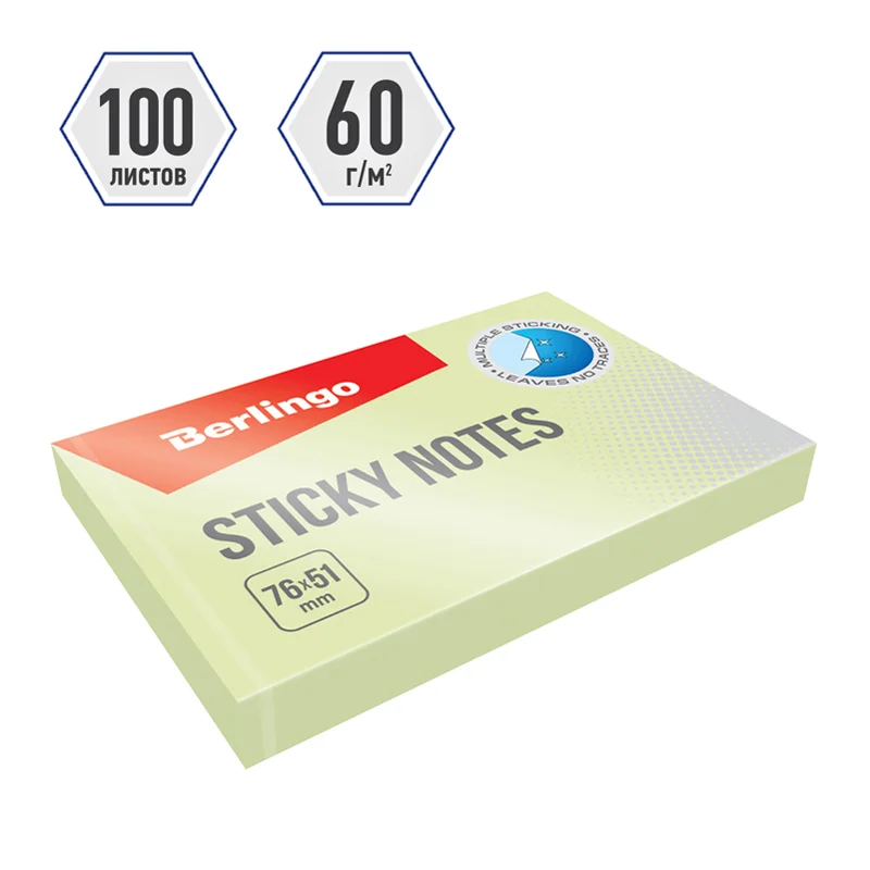 Блок для записей с клейким краем Berlingo Standard зеленый, 76х51мм, 100 листов