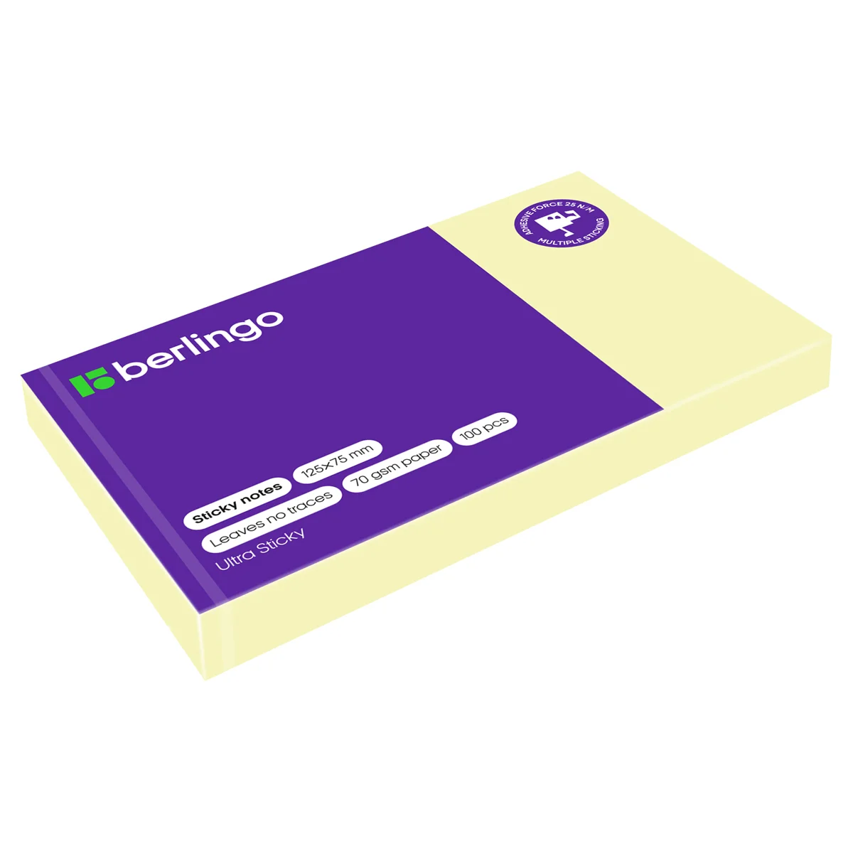 Блок для записей с клейким краем Berlingo Ultra Sticky желтый, пастель, 125х75мм, 100 листов