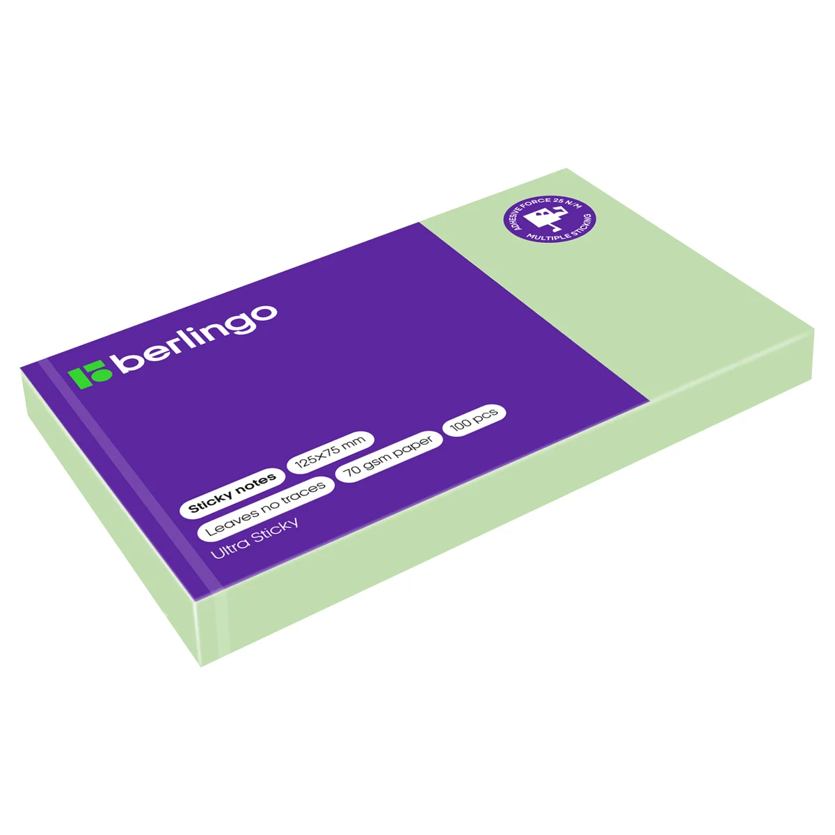 Блок для записей с клейким краем Berlingo Ultra Sticky зеленый, пастель, 125х75мм, 100 листов