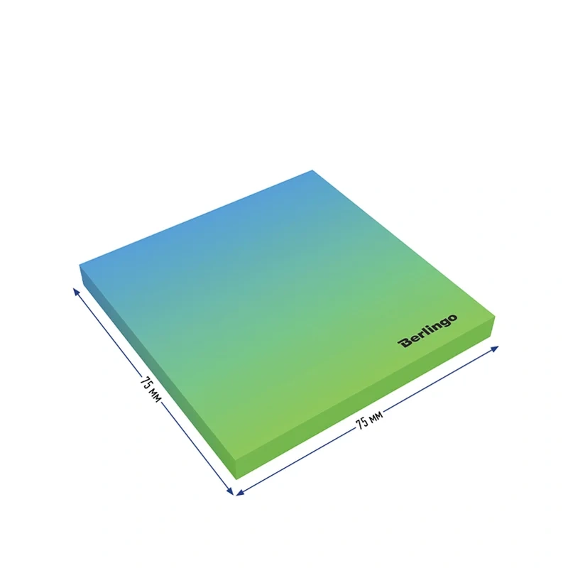 Блок для записей с клейким краем Berlingo Ultra Sticky Голубой-зеленый, градиент, 75х75мм, 50 листов