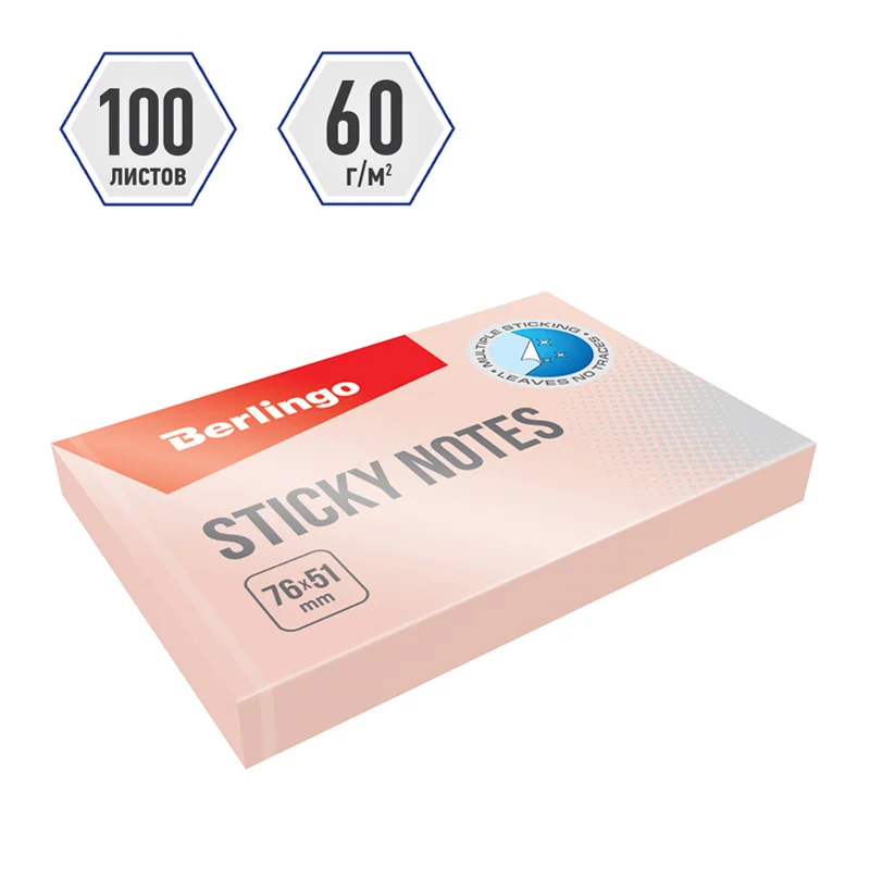 Блок для записей с клейким краем Berlingo Standard розовый, 76х51мм, 100 листов
