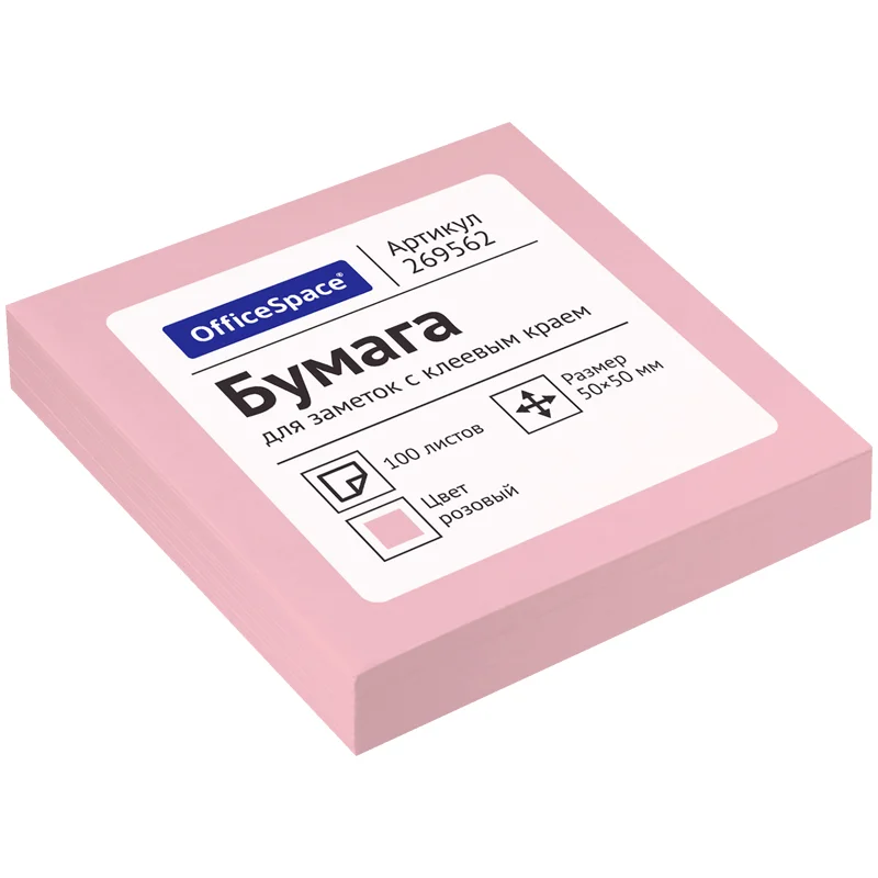 Блок для записей с клейким краем Officespace розовый, 50х50мм, 100 листов
