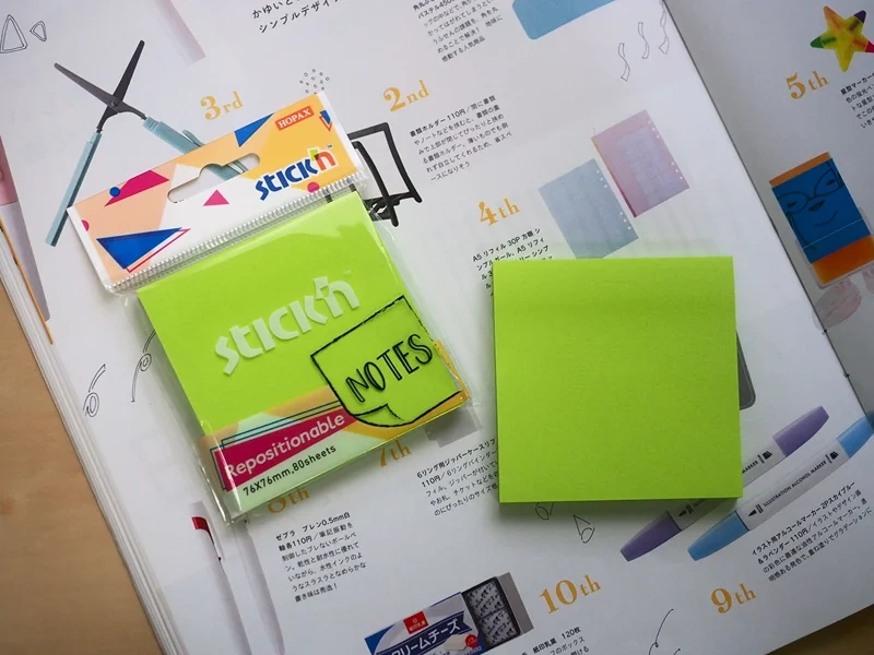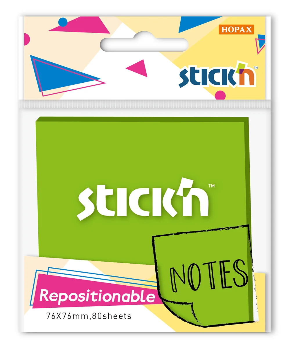 Блок для записей с клейким краем Stick'n зеленый, неон, 76х76мм, 100 листов