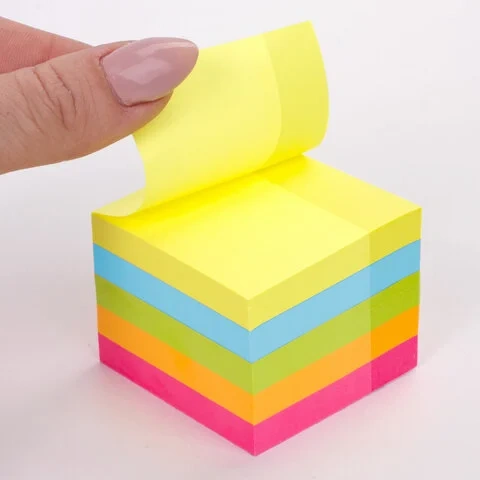 Блок для записей с клейким краем Юнландия Неоновый 7 цветов, 76х76мм, 400 листов