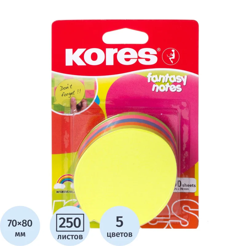 Блок для записей с клейким краем Kores Диалог 5 цветов, неон, круг, 250 листов