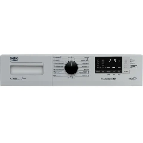 Стиральная машина BEKO RSPE78612S, 1200 об/мин, 7 кг, фронтальная загрузка, 15 программ, пар, серебр