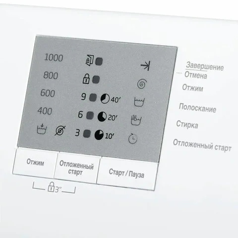 Уровень шума при стирке составляет 60 дБ, а максимальная скорость отжима – 1000 оборотов в минуту.