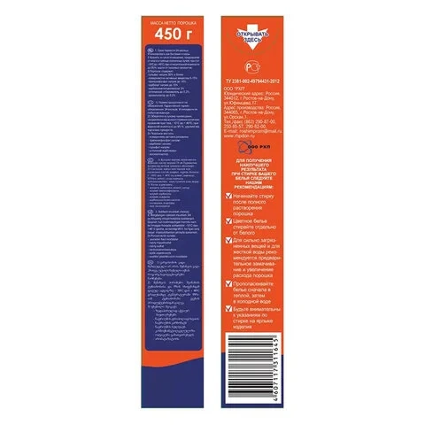 Стиральный порошок для всех типов стирки 450 г, РАДУГА ПЛЮС 'Лимон'