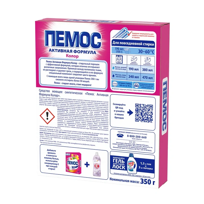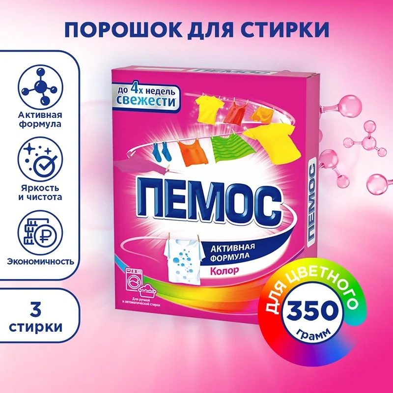 Стиральный порошок Пемос Активная формула Колор для цветного, 350г