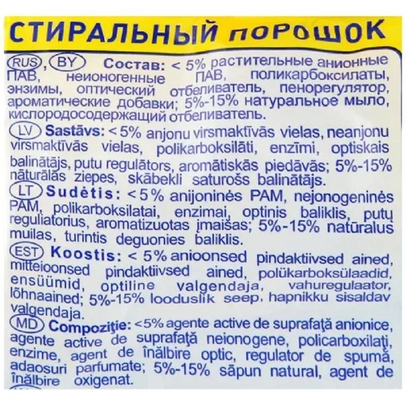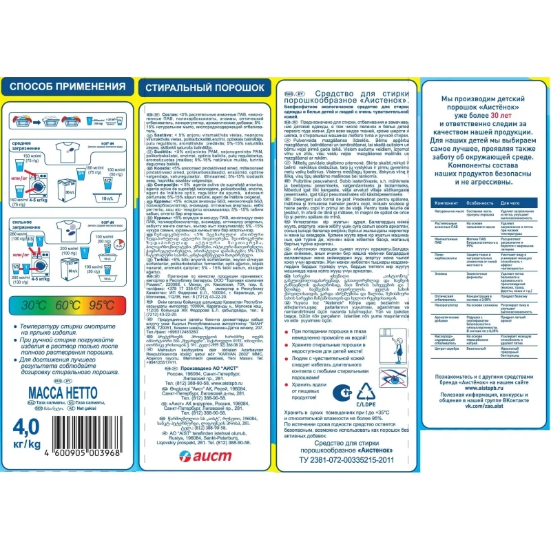 Стиральный порошок для всех типов стирки, 4 кг, АИСТЁНОК 'Волшебный вихрь', бесфосфатный, 4301010015