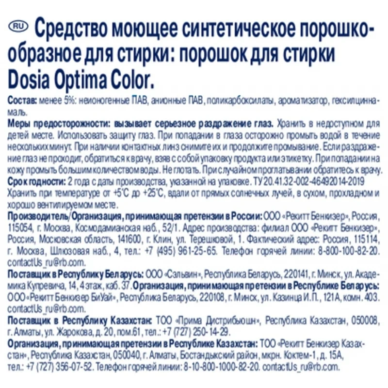 Порошок стиральный DOSIA Optima альпийская свежесть, 4кг
