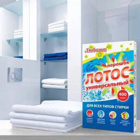 Стиральный порошок для всех типов стирки 400 г ЛЮБАША 'ЛОТОС', для всех типов тканей, 605568