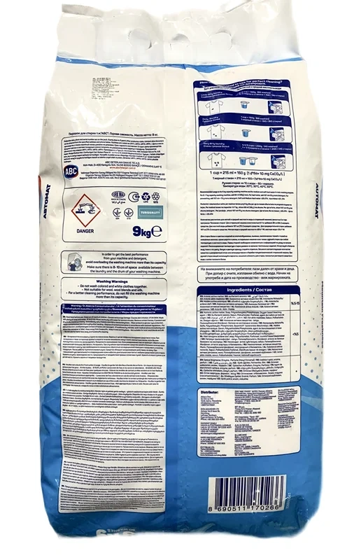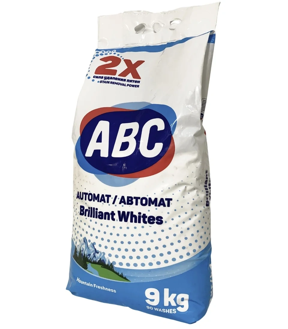 Порошок для стирки белья ABC Свежесть гор. Порошок для автоматической стирки белого белья удаляет стойкие пятна, в комплексе с активными компонентами усиленного действия глубоко проникают в волокна ткани и эффективно справляются со всеми видами загрязнений. Благодаря системе контроля пенообразования, средство эффективно выполаскивается и не остается в волокнах ткани после стирки. Натуральные ферменты и компоненты удаляют 99,9% микробов, а также все виды бытовых клещей и продукты их жизнедеятельности из волокон ткани. Удаляет неприятные запахи. С отбеливающим эффектом. Природные отбеливающие компоненты и ферменты эффективно удаляют пятна белкового происхождения. Типы тканей: хлопок, лен, полиэстер, вискоза, нейлон, акриловое волокно.