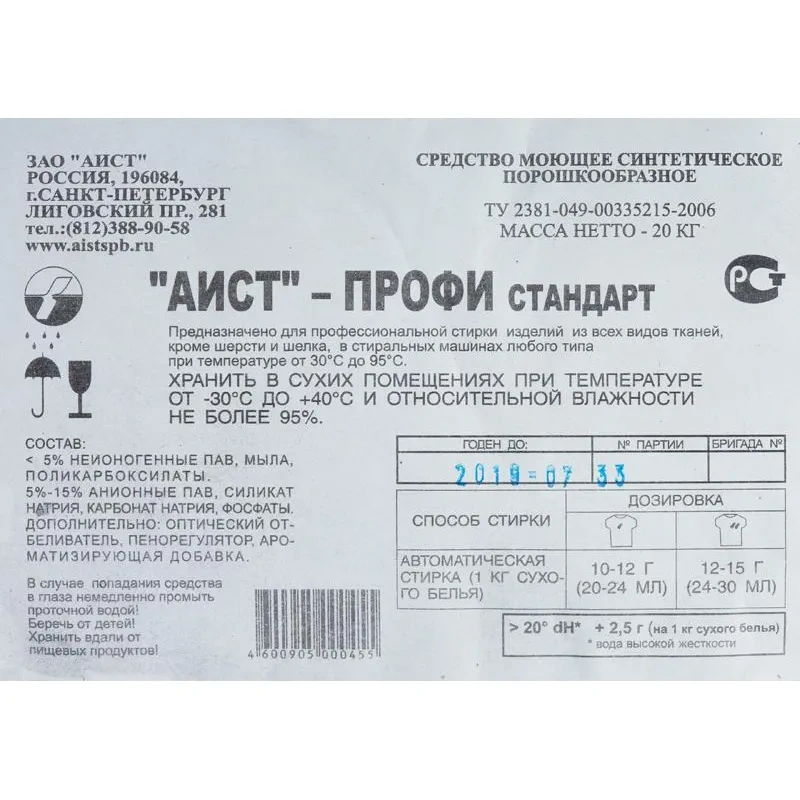 Порошок стиральный автомат Аист Профи Стандарт 20 кг для белого и цветного белья