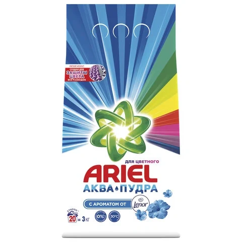 Стиральный порошок Ariel с ароматом от Lenor Color Автомат для стиральной машины предназначен для стирки цветного и белого белья. Благодаря технологии Аквапудра, порошок для стирки Ariel Color растворяется, едва коснувшись воды, и моментально активируется: глубоко проникает в структуру волокон и удаляет сложные пятна, не давая загрязнениям въедаться. Ariel с ароматом от Lenor Color удаляет даже невидимые загрязнения, устраняя неприятные запахи и предотвращая изменение цвета ткани, в том числе на воротничках и манжетах.