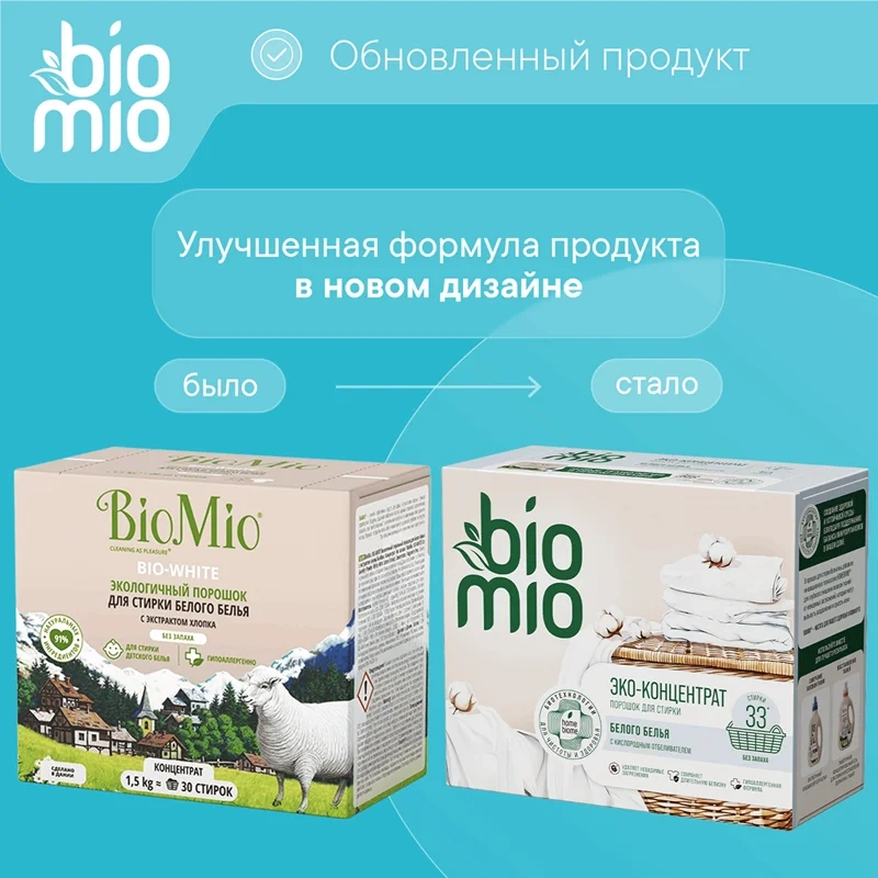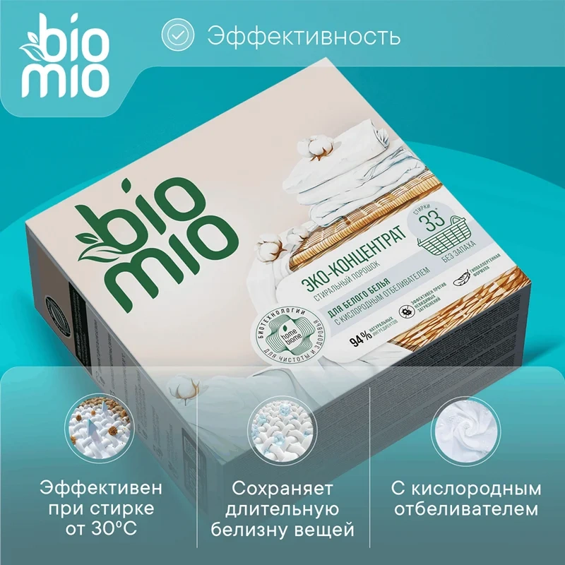 Стиральный порошок BioMio для белого белья концентрат, 1кг