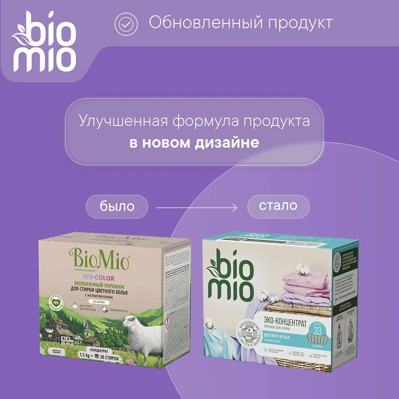 Стиральный порошок BioMio для цветного белья концентрат, 1кг