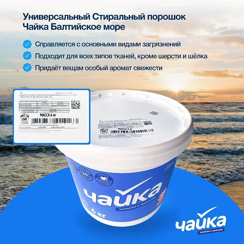 Стиральный порошок Чайка Балтийское море 6 кг, универсальный, ведро