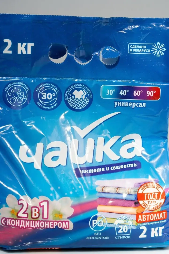 Стиральный порошок Чайка Универсал 2кг, 2 в 1 с кондиционером, автомат