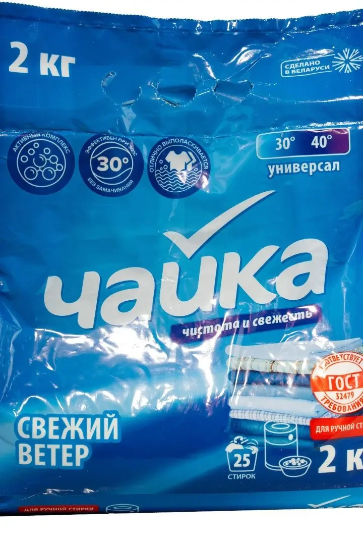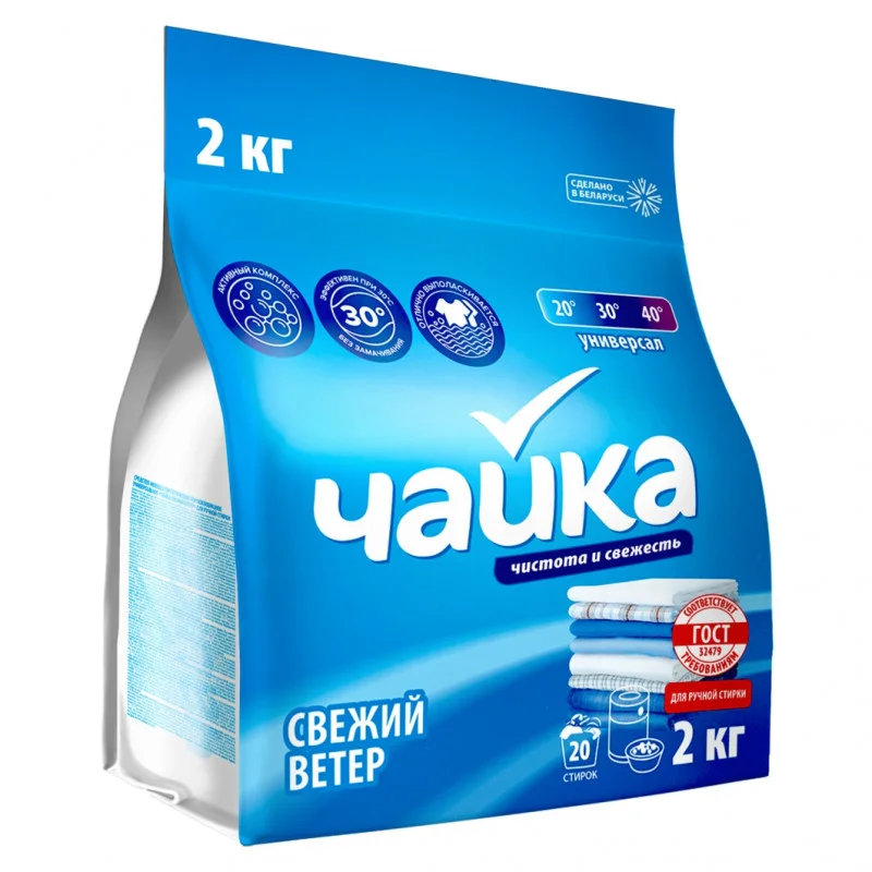 Стиральный порошок Чайка Универсал, 2кг, свежий ветер, ручная стирка