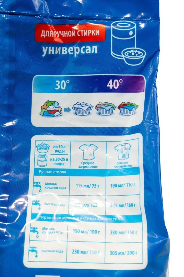 Универсальный стиральный порошок 'Свежий ветер'. Порошок образует густую пышную пену для комфортной стирки. Также, идеально подходит для стиральных машин активаторного типа. Придает одежде легкий аромат свежести. Отлично и быстро выполаскивается, не оставляя следов и разводов. Не содержит фосфаты.