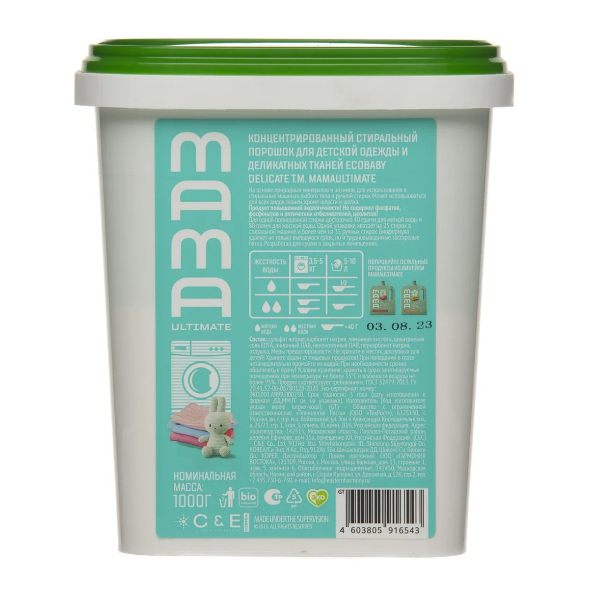 Концентрированный стиральный порошок для детской одежды и деликатных тканей Ecobaby Delicate торговой марки MamaUltimate на основе природных минералов и энзимов, для использования в стиральных машинах любого типа и ручной стирки. Может использоваться для всех видов тканей кроме шерсти и шелка. Биоформула удаляет не только въевшуюся грязь, но и трудновыводимые застарелые пятна. Разработан для сушки в закрытых помещениях. Продукт повышенной экологичности. Не содержит фосфатов, фосфонатов, оптических отбеливателей и цеолитов.